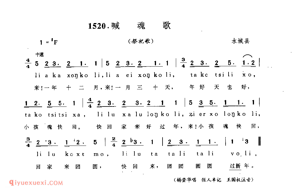 喊魂歌(祭耙歌) 水城县_祭祀歌_贵州民间歌曲简谱