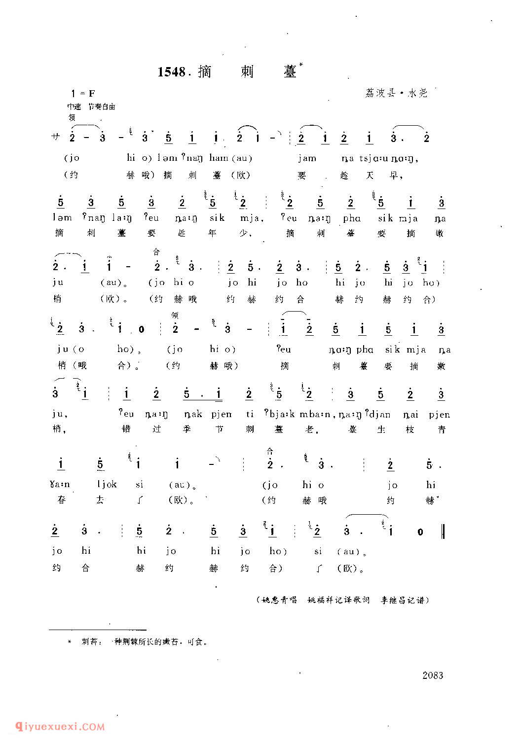 摘刺苔 荔波县·水尧_旭基_贵州民间歌曲简谱
