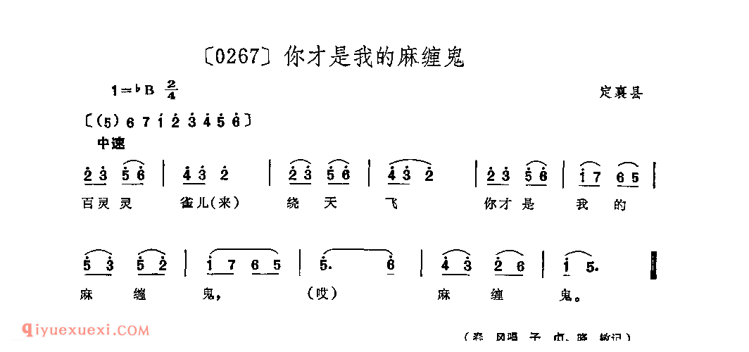 你才是我的麻缠鬼&定襄县_山曲_山西民间歌曲简谱