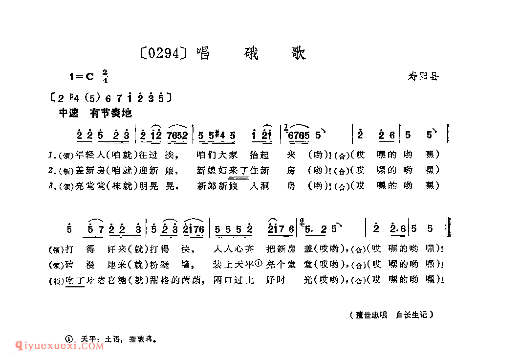唱硪歌&寿阳县_夯硪号子_山西民间歌曲简谱