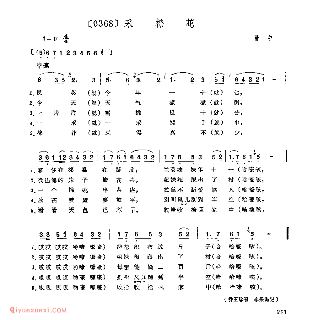 采棉花&晋中_秧歌_山西民间歌曲简谱高清简谱歌词是器乐学习网于2022年09月02日 12:15:42更新分享的民歌曲谱;资源收录于民歌曲谱栏目中;器乐学习网免费分享采棉花&晋中_秧歌_山西民间歌曲简谱简谱与五线谱歌谱图片,欢迎在线免费下载;器乐学习网无需注册会员,直接免费下载各类乐器学习资源及乐谱。