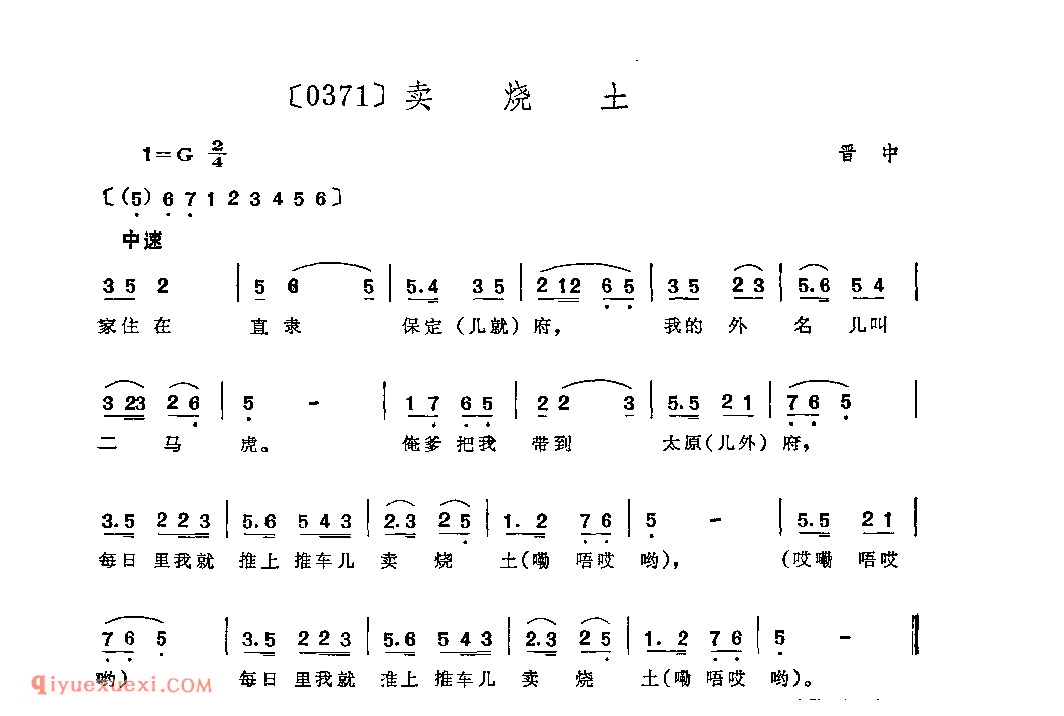 卖烧土&晋中_秧歌_山西民间歌曲简谱