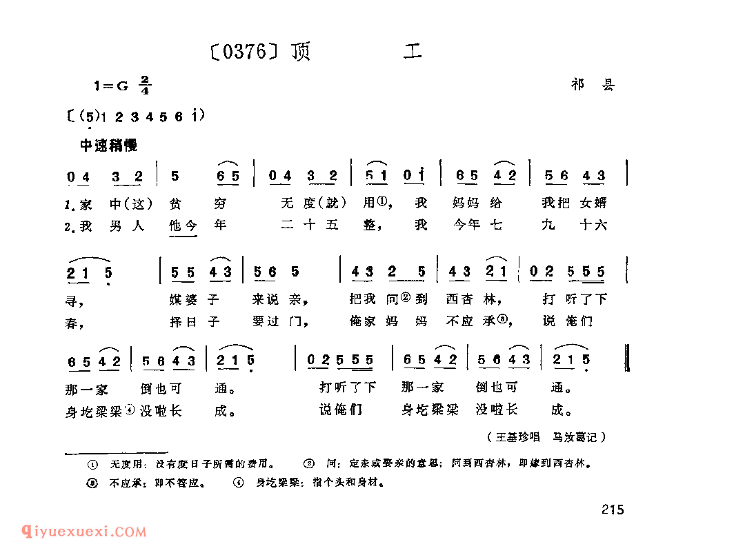 顶工&祁县_秧歌_山西民间歌曲简谱