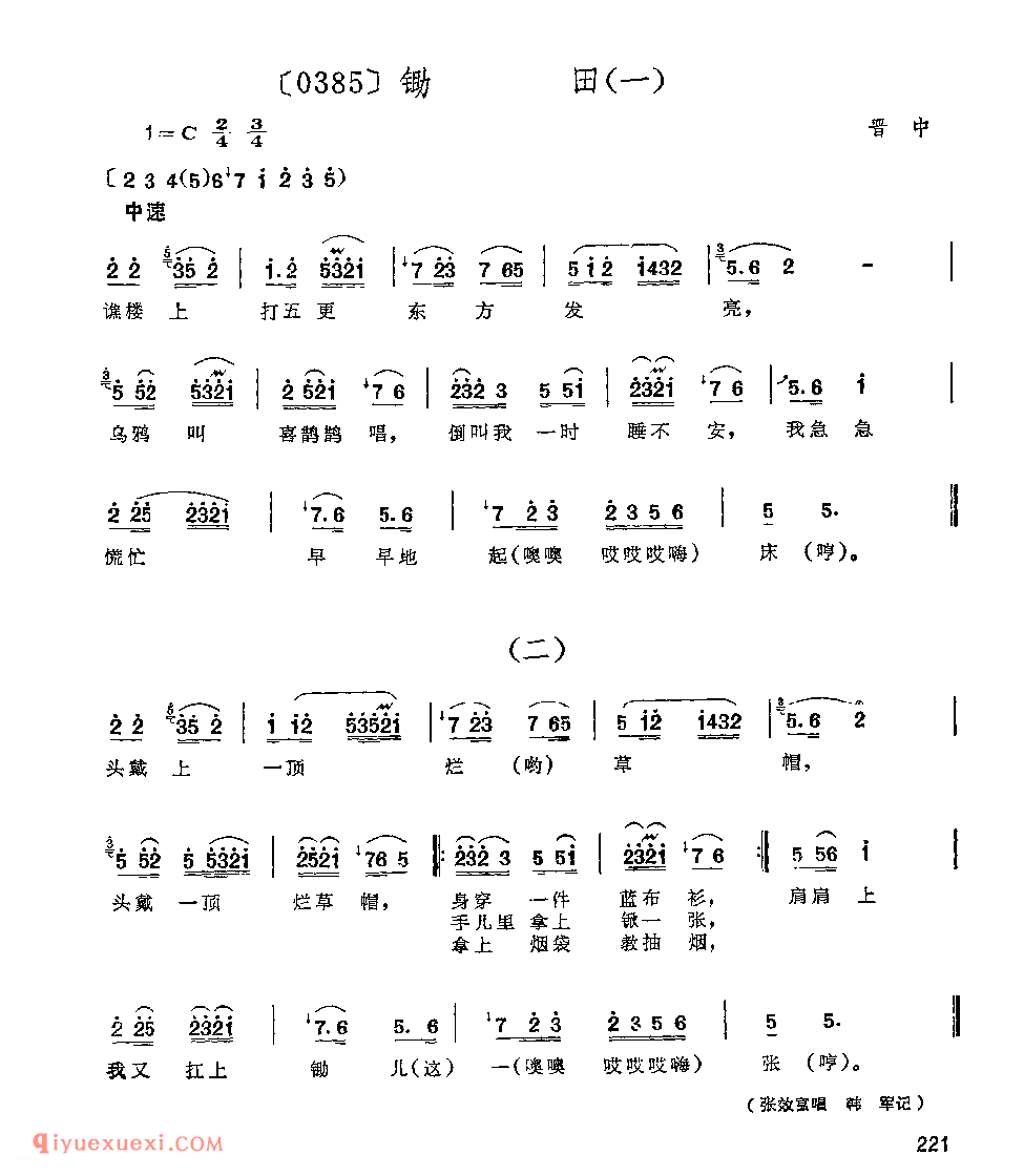 锄田(一、二)&晋中_秧歌_山西民间歌曲简谱