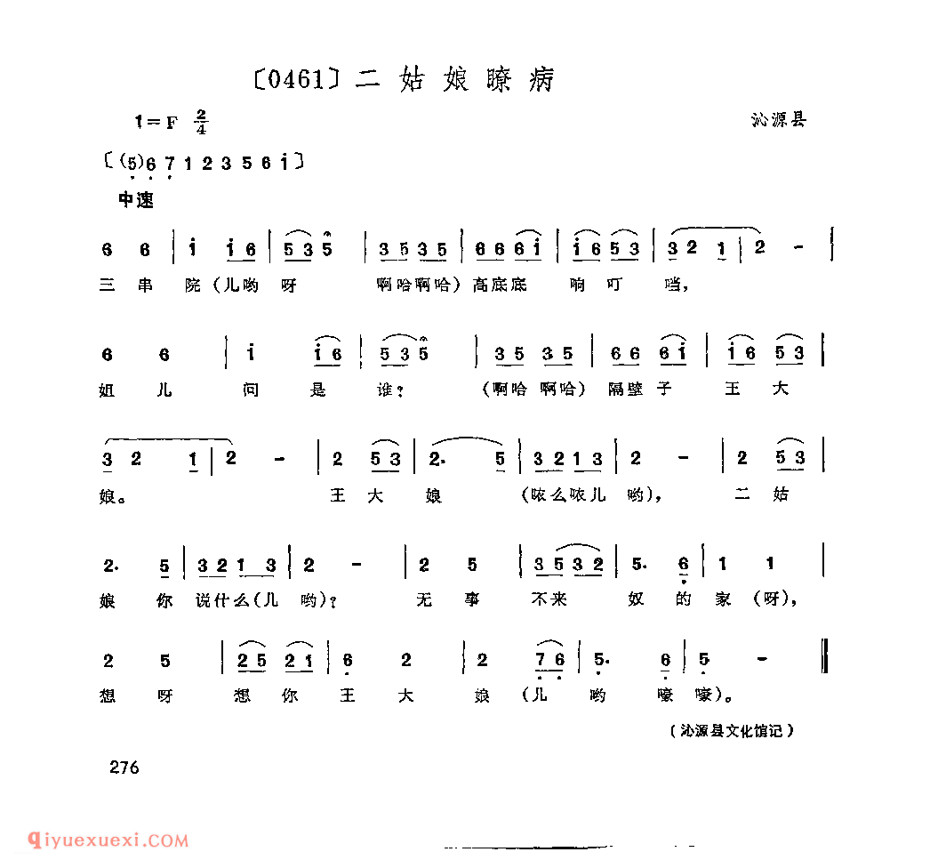 二姑娘瞭病&沁源县_秧歌_山西民间歌曲简谱