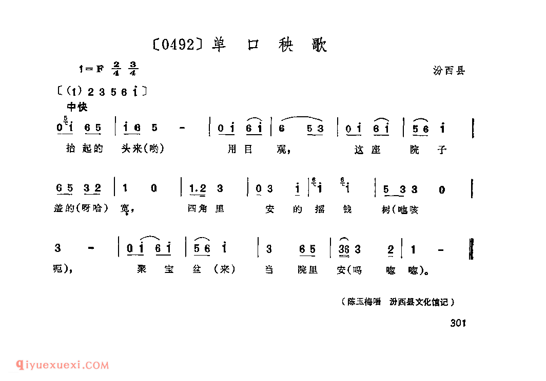 单口秧歌&汾西县_秧歌_山西民间歌曲简谱