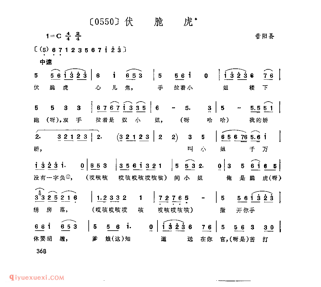 伏脆虎&昔阳县_秧歌_山西民间歌曲简谱