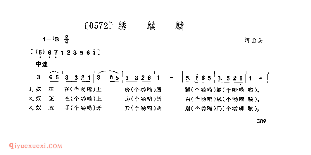 绣麒麟&河曲县_秧歌_山西民间歌曲简谱
