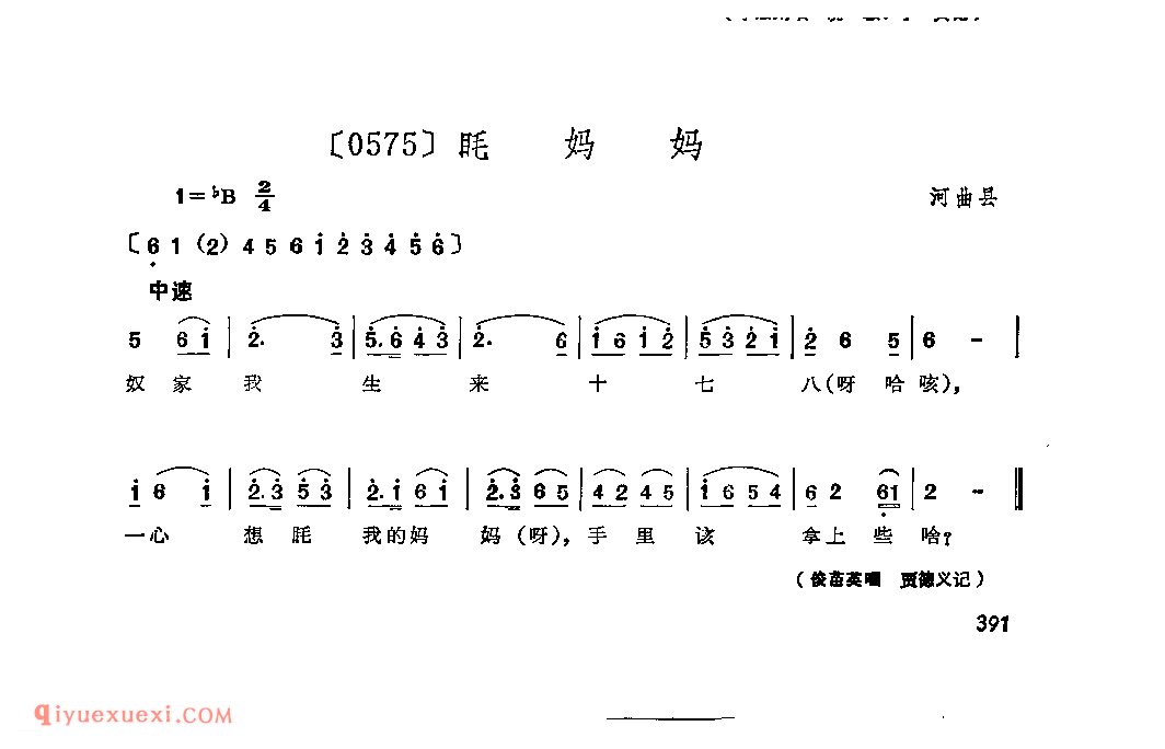 眊妈妈&河曲县_秧歌_山西民间歌曲简谱