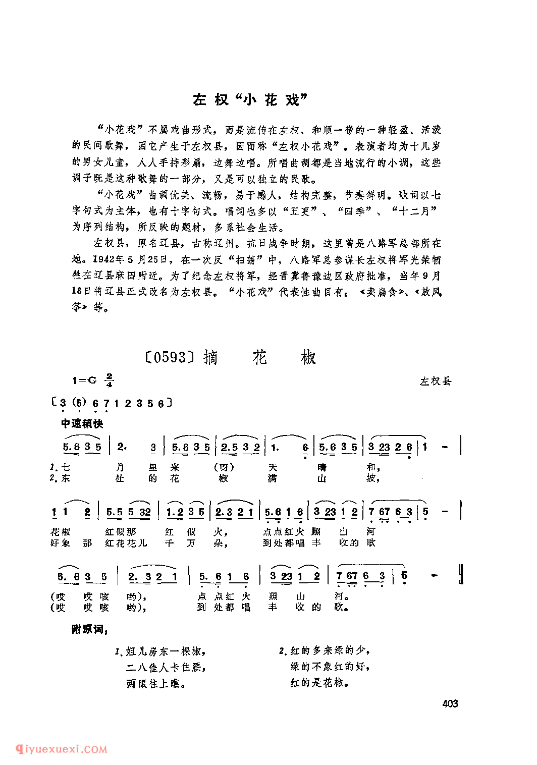摘花椒&左权县_秧歌_山西民间歌曲简谱