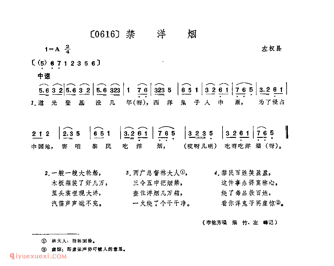 禁洋烟&左权县_秧歌_山西民间歌曲简谱