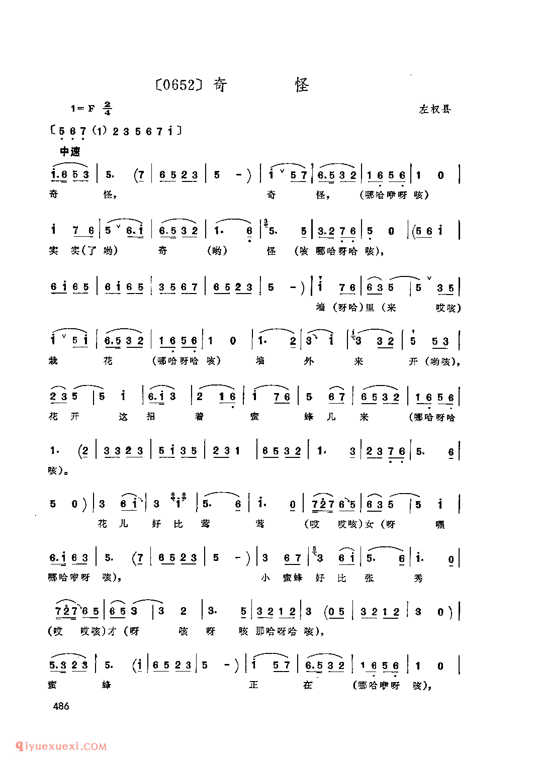 奇怪&左权县_左权大腔_山西民间歌曲简谱