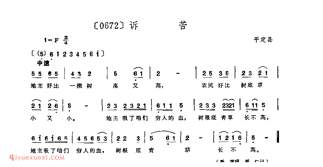 诉苦&平定县_小调类_山西民间歌曲简谱高清简谱歌词是器乐学习网于2022年09月14日 09:56:10更新分享的民歌曲谱;资源收录于民歌曲谱栏目中;器乐学习网免费分享诉苦&平定县_小调类_山西民间歌曲简谱简谱与五线谱歌谱图片,欢迎在线免费下载;器乐学习网无需注册会员,直接免费下载各类乐器学习资源及乐谱。