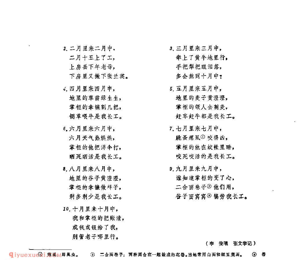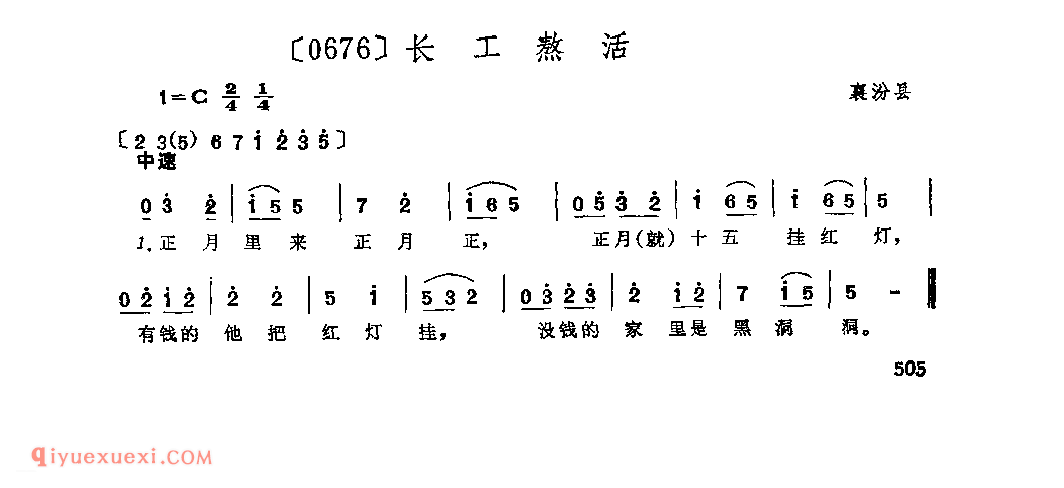 长工熬活&襄汾县_小调类_山西民间歌曲简谱