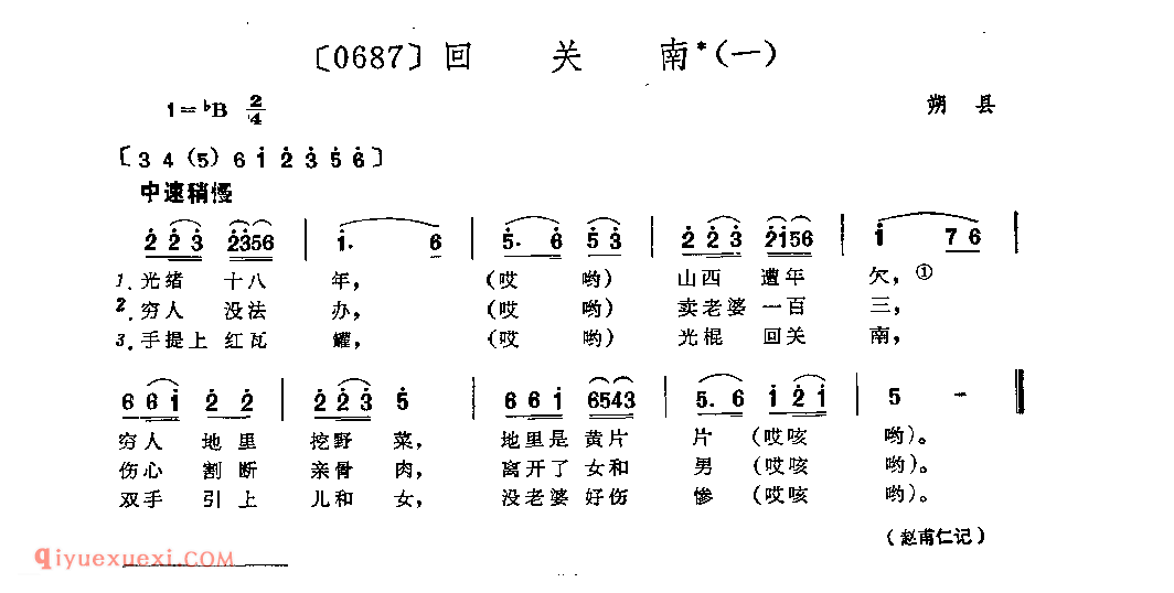 回关南(一)&朔县_小调类_山西民间歌曲简谱高清简谱歌词是器乐学习网于2022年09月14日 10:04:07更新分享的民歌曲谱;资源收录于民歌曲谱栏目中;器乐学习网免费分享回关南(一)&朔县_小调类_山西民间歌曲简谱简谱与五线谱歌谱图片,欢迎在线免费下载;器乐学习网无需注册会员,直接免费下载各类乐器学习资源及乐谱。