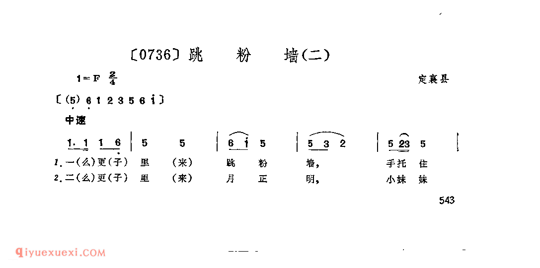 跳粉墙(二)&定襄县_小调类_山西民间歌曲简谱高清简谱歌词是器乐学习网于2022年09月14日 11:06:14更新分享的民歌曲谱;资源收录于民歌曲谱栏目中;器乐学习网免费分享跳粉墙(二)&定襄县_小调类_山西民间歌曲简谱简谱与五线谱歌谱图片,欢迎在线免费下载;器乐学习网无需注册会员,直接免费下载各类乐器学习资源及乐谱。