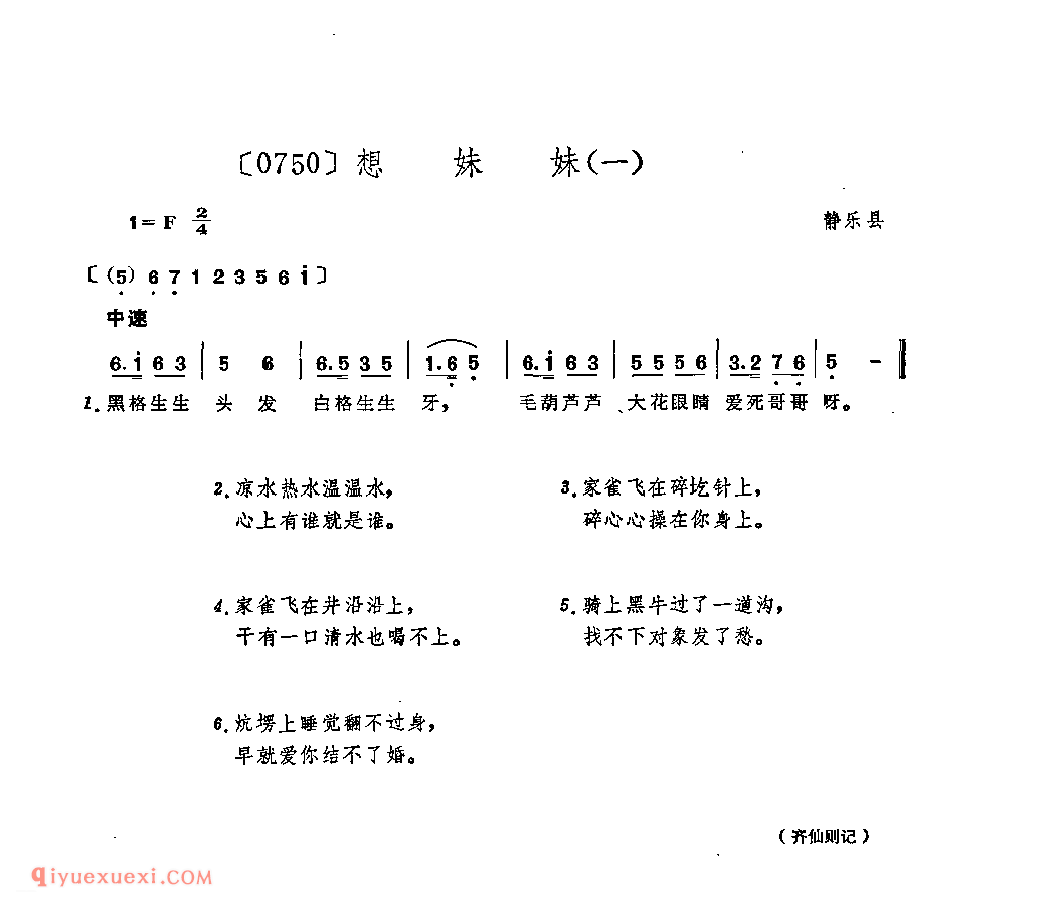 想妹妹(一)&静乐县_小调类_山西民间歌曲简谱高清简谱歌词是器乐学习网于2022年09月14日 11:13:00更新分享的民歌曲谱;资源收录于民歌曲谱栏目中;器乐学习网免费分享想妹妹(一)&静乐县_小调类_山西民间歌曲简谱简谱与五线谱歌谱图片,欢迎在线免费下载;器乐学习网无需注册会员,直接免费下载各类乐器学习资源及乐谱。