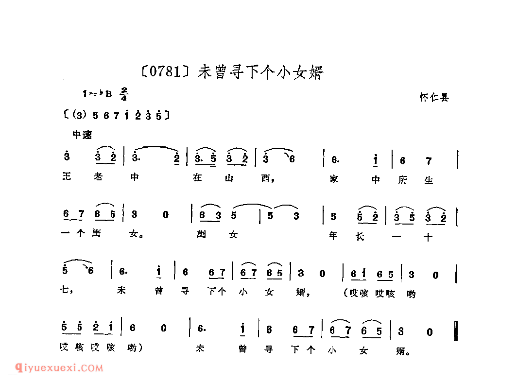 未曾寻下个小女婿&怀仁县_小调类_山西民间歌曲简谱