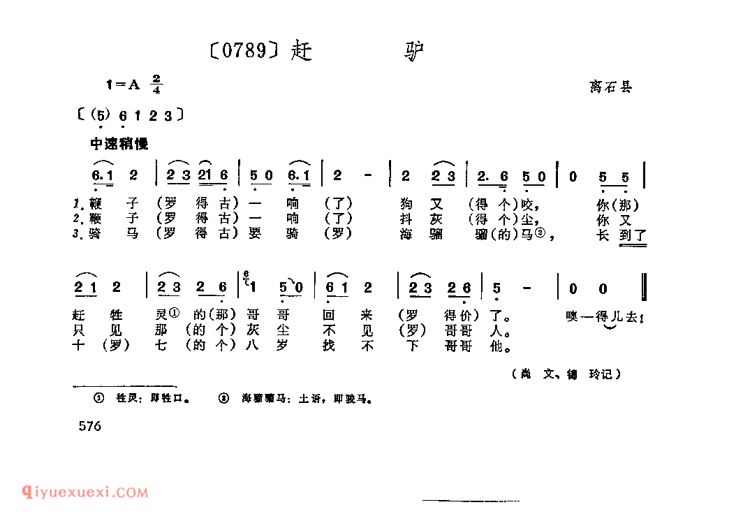 赶驴&离石县_小调类_山西民间歌曲简谱