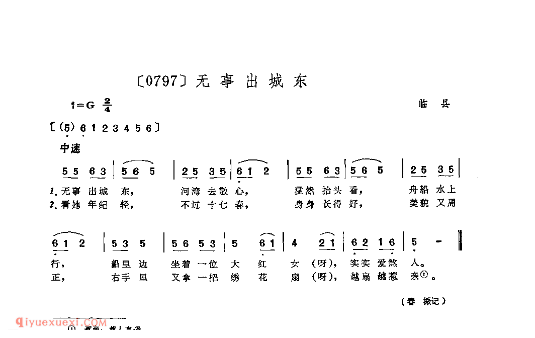 无事出城东&临县_小调类_山西民间歌曲简谱