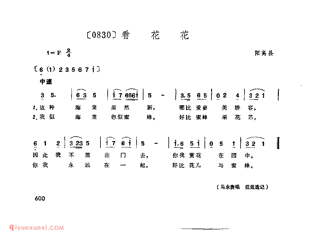 看花花&阳高县_小调类_山西民间歌曲简谱