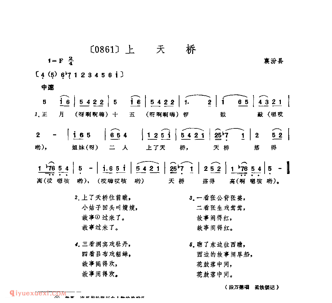 上天桥&襄汾县_小调类_山西民间歌曲简谱
