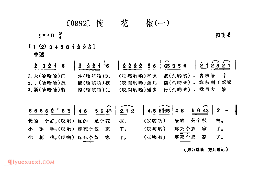 摘花椒(一)&阳高县_小调类_山西民间歌曲简谱高清简谱歌词是器乐学习网于2022年09月15日 11:12:13更新分享的民歌曲谱;资源收录于民歌曲谱栏目中;器乐学习网免费分享摘花椒(一)&阳高县_小调类_山西民间歌曲简谱简谱与五线谱歌谱图片,欢迎在线免费下载;器乐学习网无需注册会员,直接免费下载各类乐器学习资源及乐谱。