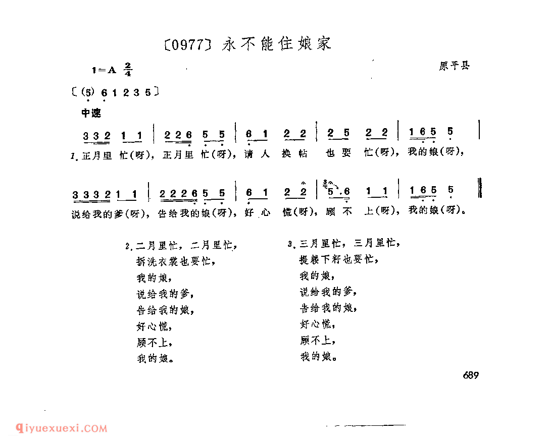 永不能住娘家&原平县_小调类_山西民间歌曲简谱