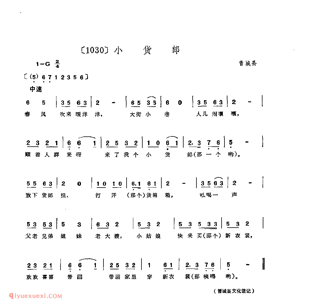 小货郎&晋城县_小调类_山西民间歌曲简谱