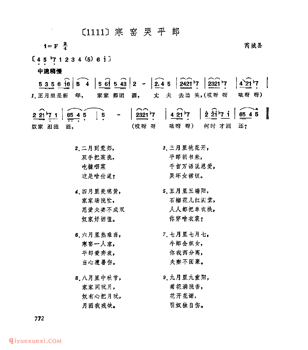 寒窑哭平郎&芮城县_小调类_山西民间歌曲简谱