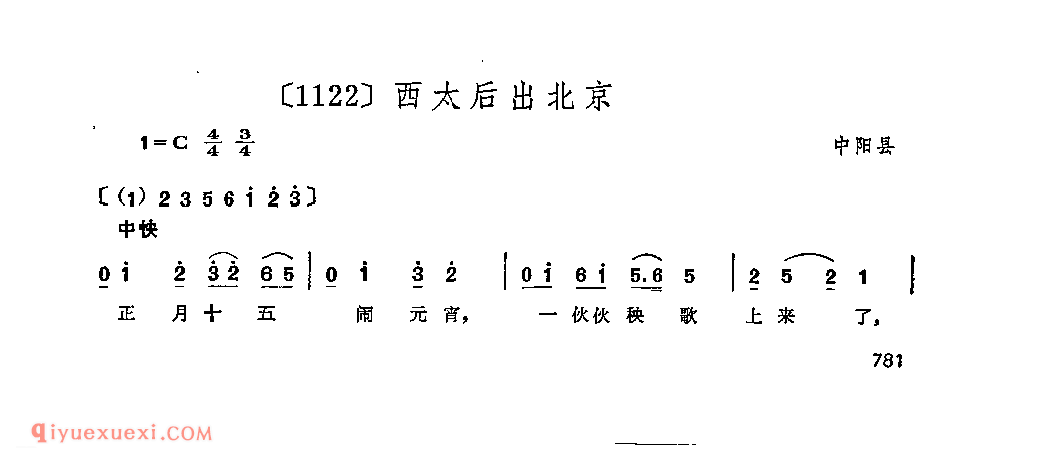 西太后出北京&中阳县_小调类_山西民间歌曲简谱