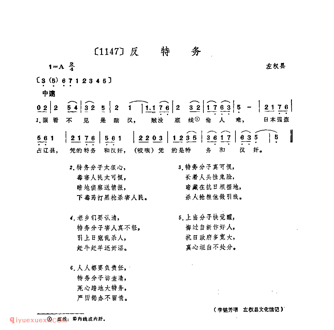 反特务&左权县_小调类_山西民间歌曲简谱高清简谱歌词是器乐学习网于2022年09月19日 11:14:03更新分享的民歌曲谱;资源收录于民歌曲谱栏目中;器乐学习网免费分享反特务&左权县_小调类_山西民间歌曲简谱简谱与五线谱歌谱图片,欢迎在线免费下载;器乐学习网无需注册会员,直接免费下载各类乐器学习资源及乐谱。