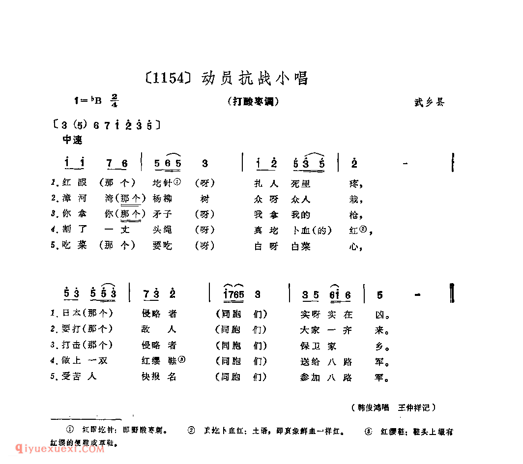 动员抗战小唱&武乡县_小调类_山西民间歌曲简谱高清简谱歌词是器乐学习网于2022年09月19日 11:18:13更新分享的民歌曲谱;资源收录于民歌曲谱栏目中;器乐学习网免费分享动员抗战小唱&武乡县_小调类_山西民间歌曲简谱简谱与五线谱歌谱图片,欢迎在线免费下载;器乐学习网无需注册会员,直接免费下载各类乐器学习资源及乐谱。