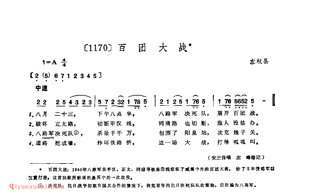 百团大战&左权县_小调类_山西民间歌曲简谱