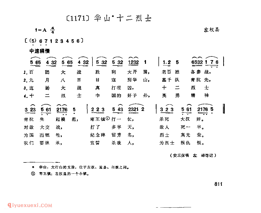 华山十二烈士&左权县_小调类_山西民间歌曲简谱