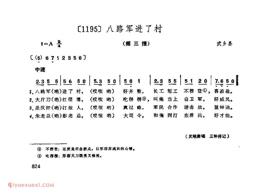 八路军进了村&武乡县_小调类_山西民间歌曲简谱高清简谱歌词是器乐学习网于2022年09月19日 11:41:47更新分享的民歌曲谱;资源收录于民歌曲谱栏目中;器乐学习网免费分享八路军进了村&武乡县_小调类_山西民间歌曲简谱简谱与五线谱歌谱图片,欢迎在线免费下载;器乐学习网无需注册会员,直接免费下载各类乐器学习资源及乐谱。