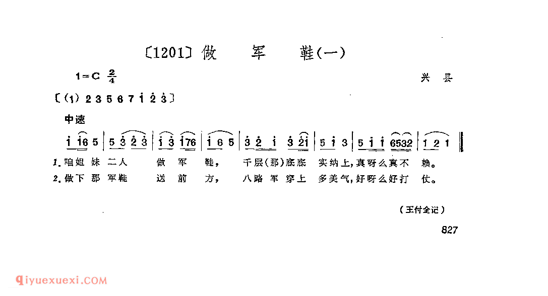 做军鞋(一)&兴县_小调类_山西民间歌曲简谱