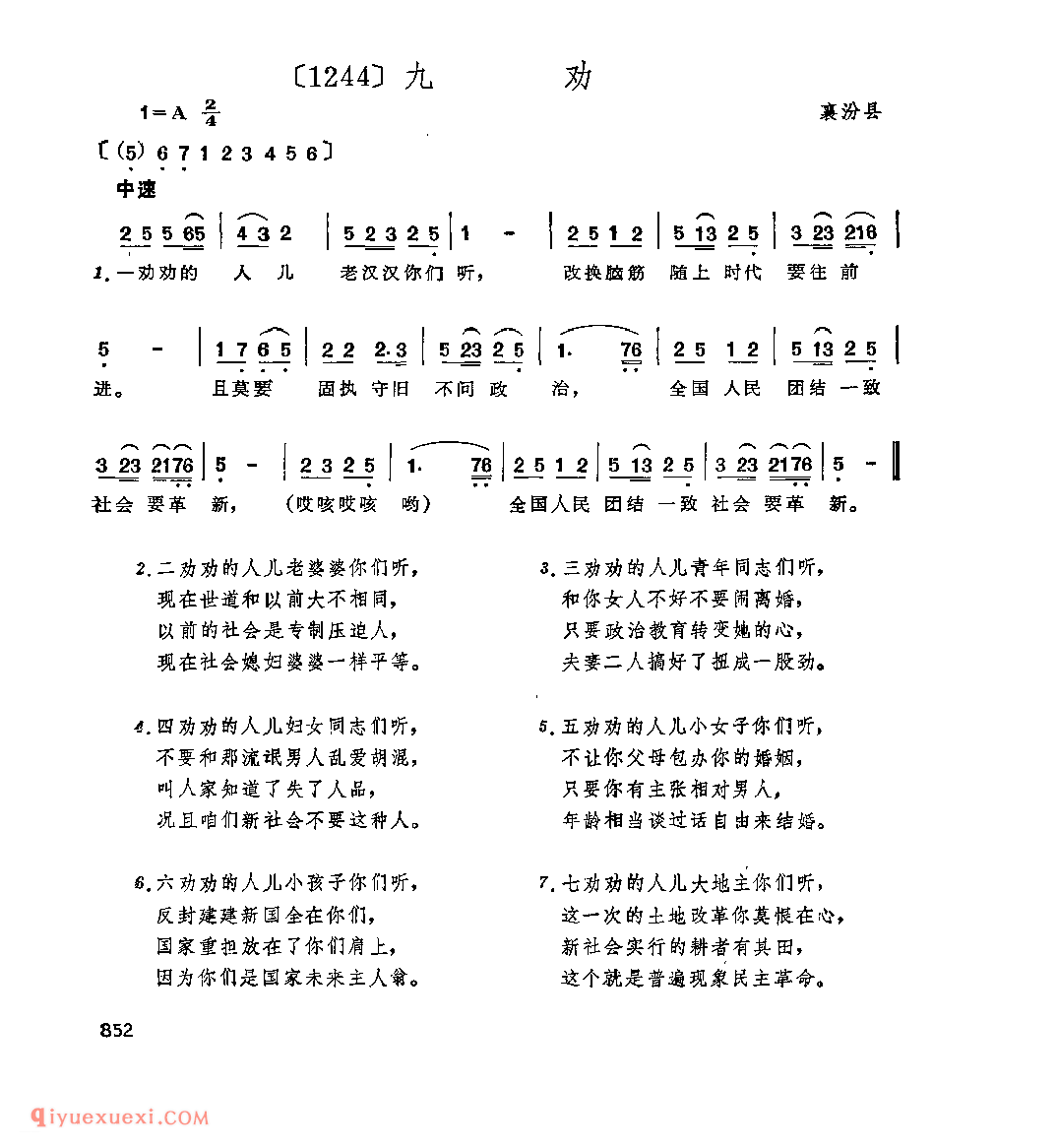 九劝&襄汾县_小调类_山西民间歌曲简谱