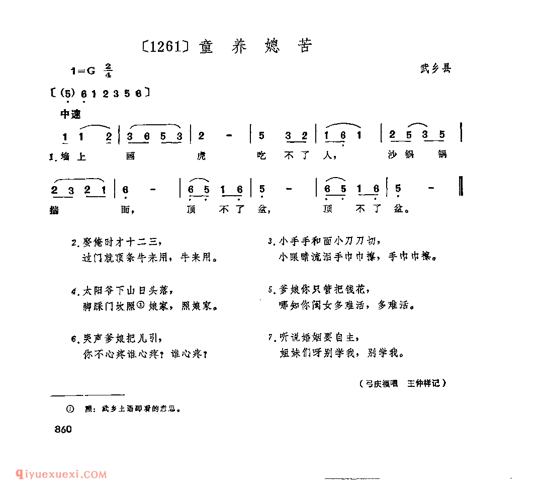 童养媳苦&武乡县_小调类_山西民间歌曲简谱