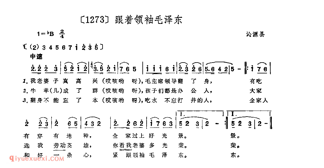 跟着领袖毛泽东&沁源县_小调类_山西民间歌曲简谱