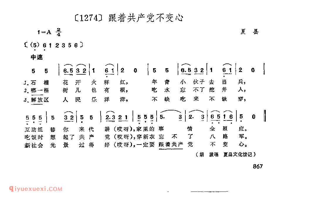 跟着共产党不变心&夏县_小调类_山西民间歌曲简谱