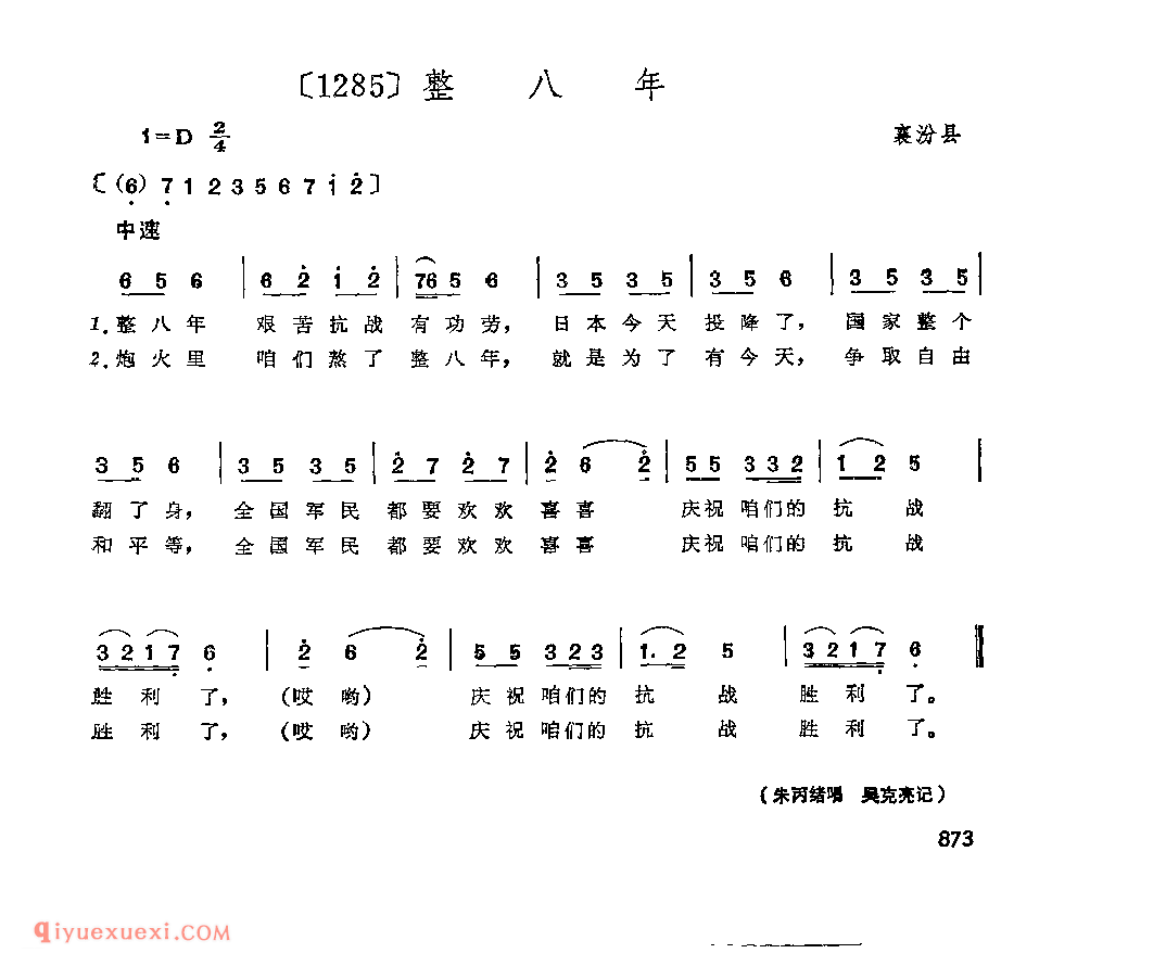 整八年&襄汾县_小调类_山西民间歌曲简谱