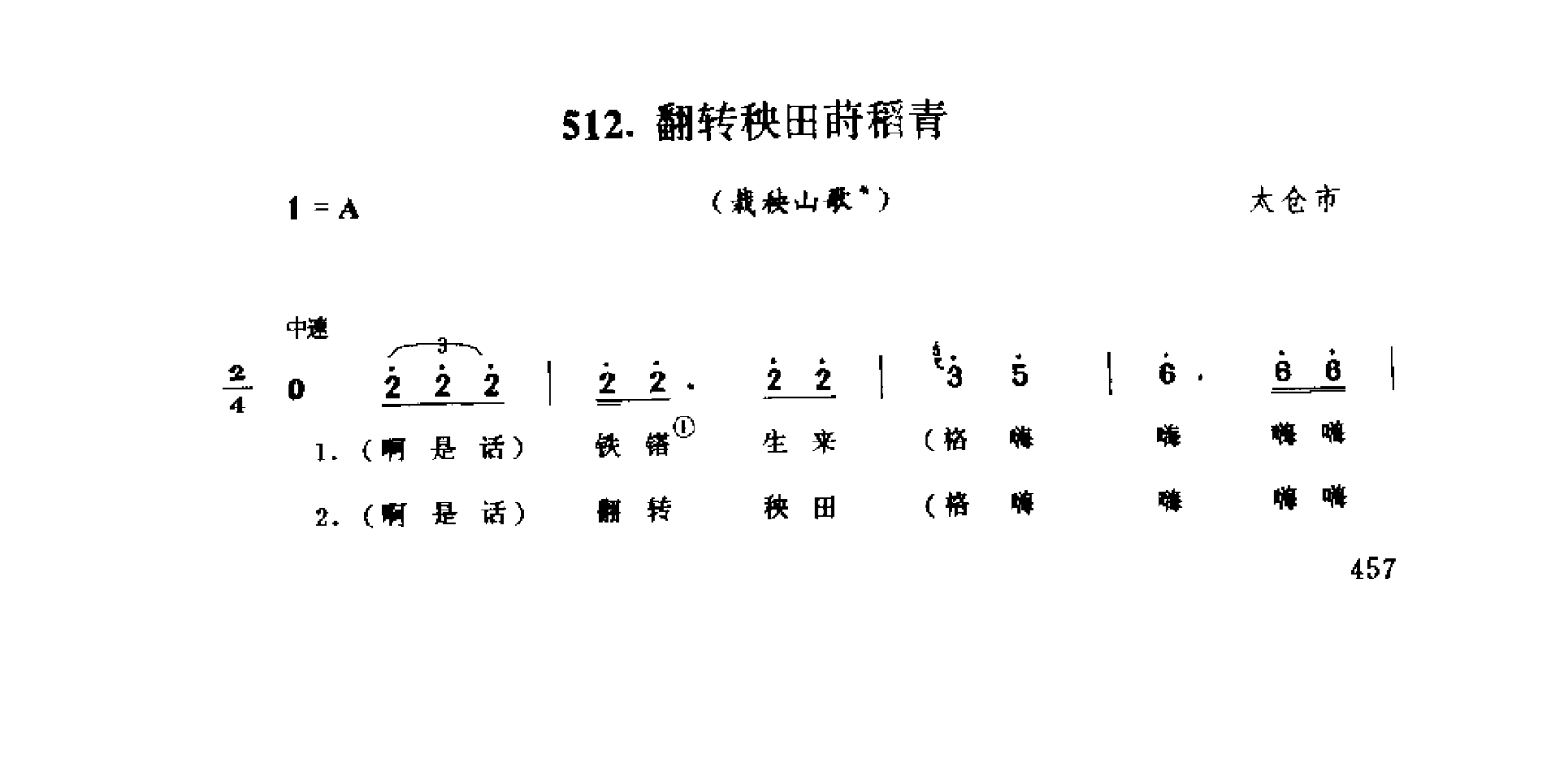裁秧山歌当地又叫“莳稻山歌”铁错:刨土的农具,有三个至六个略向里弯的铁齿