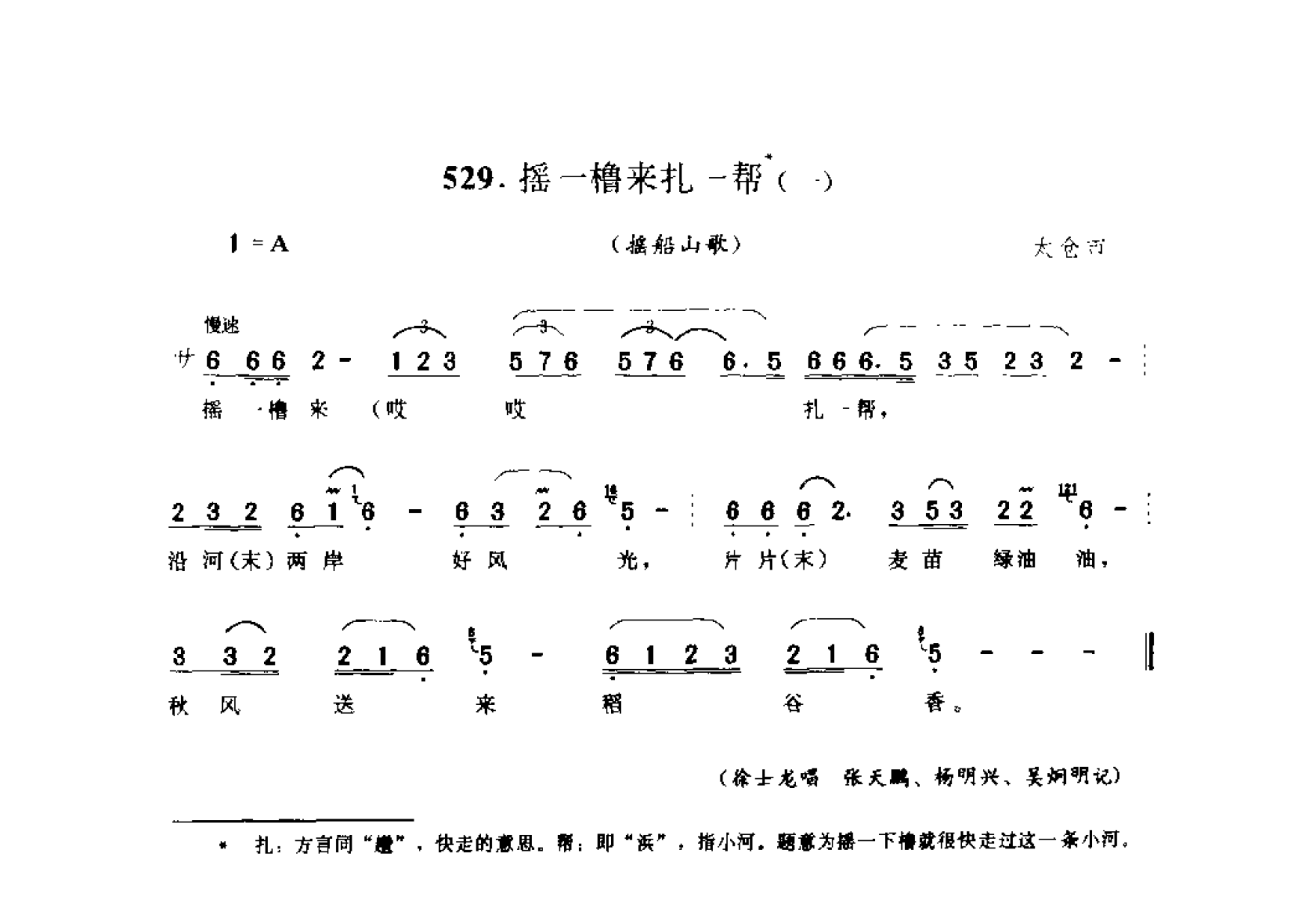 快走的意思。帮:即“浜”,指小河。题意为摇一下就很快走过这一条小河。扎:方言间“畿”