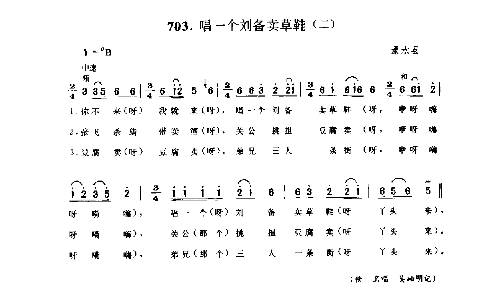 山歌:唱一个刘备卖草鞋(二) 溧水县高清简谱歌词是器乐学习网于2024年12月23日 11:17:18更新分享的民歌曲谱;资源收录于民歌曲谱栏目中;器乐学习网免费分享山歌:唱一个刘备卖草鞋(二) 溧水县简谱与五线谱歌谱图片,欢迎在线免费下载;器乐学习网无需注册会员,直接免费下载各类乐器学习资源及乐谱。