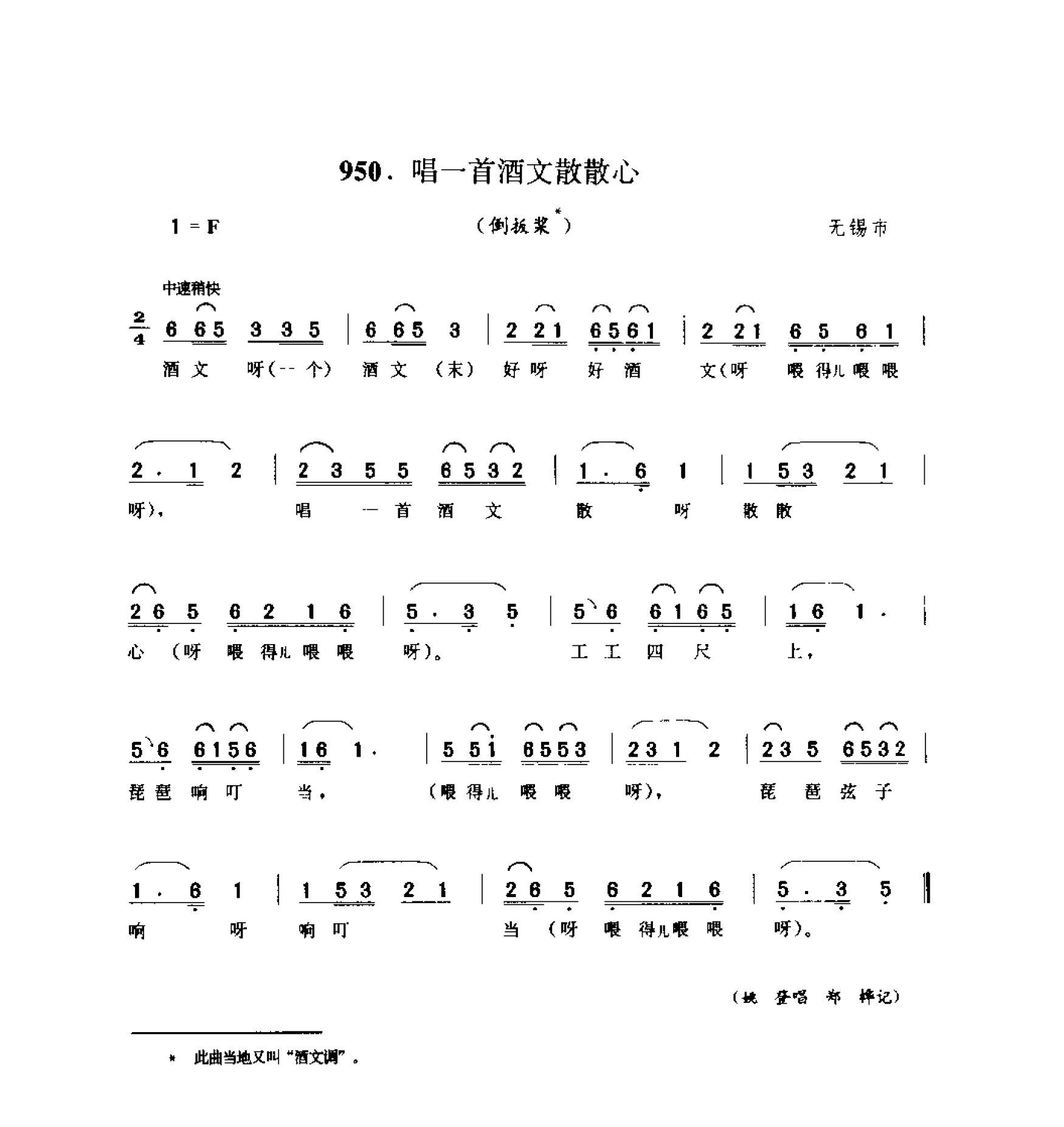 唱一首酒文散散心(倒扳桨) 无锡市高清简谱歌词是器乐学习网于2024年12月24日 14:33:36更新分享的民歌曲谱;资源收录于民歌曲谱栏目中;器乐学习网免费分享唱一首酒文散散心(倒扳桨) 无锡市简谱与五线谱歌谱图片,欢迎在线免费下载;器乐学习网无需注册会员,直接免费下载各类乐器学习资源及乐谱。