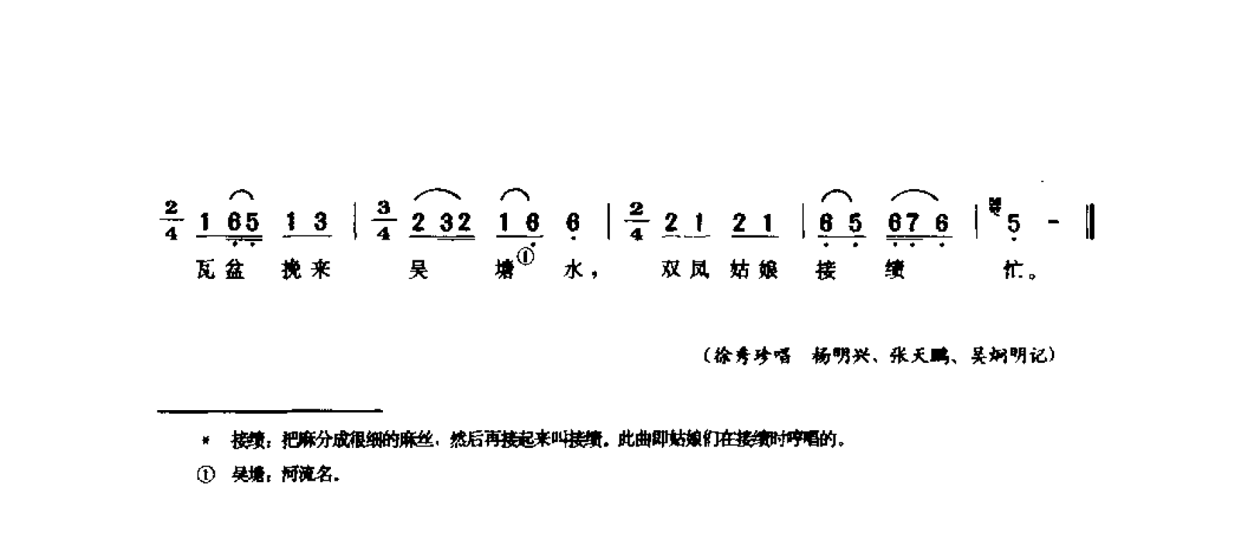 接绩:把麻分成很细的麻丝,然后再接起来叫接绩。此曲即姑娘们在接续时哼唱的,吴境;河流名。