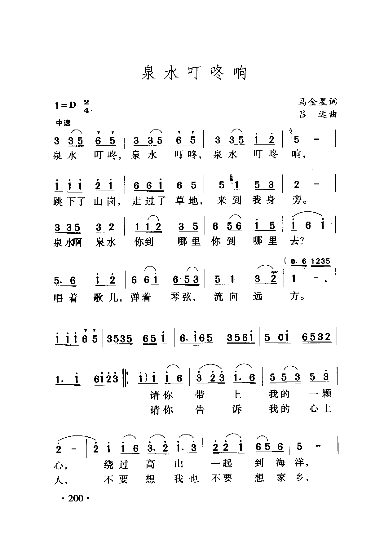 泉水叮咚响 马金星词远曲