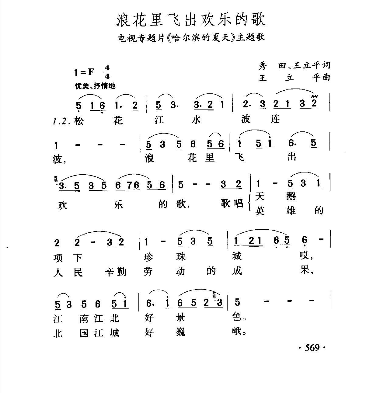 浪花里飞出欢乐的歌(电视专题片《哈尔滨的夏天》主题歌)秀田、王立平词 王立平曲