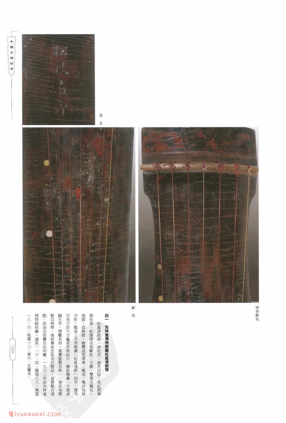 仲尼式古琴《吉林省博物馆藏松风清节琴》高清图片及简介